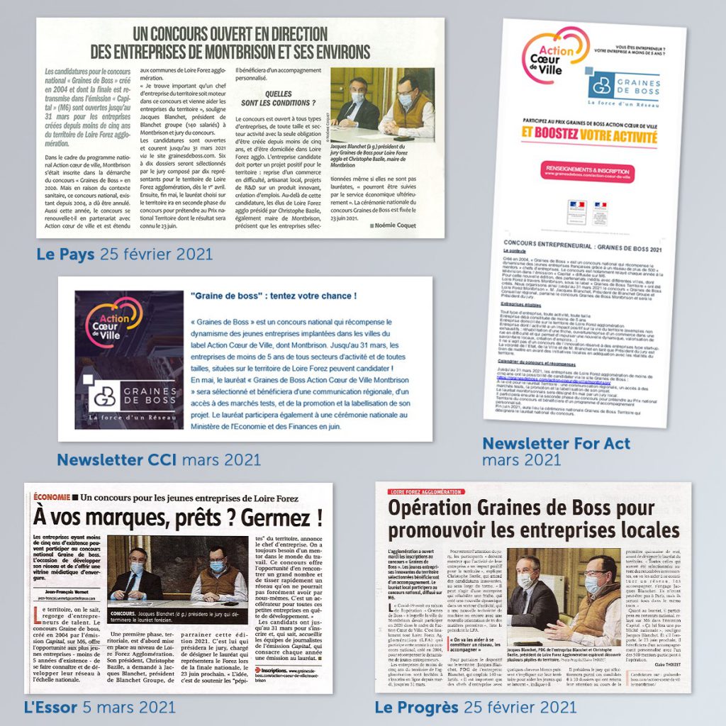 Le concours Graine de Boss, qui valorise les jeunes entreprises partout en France, a lancé sa 17ème édition. Loire Forez Agglomération participe à l’aventure sous le parrainage de Blanchet Groupe. Les lauréats de cette sélection territoriale pourrons concourir à la finale nationale le 23 juin prochain.